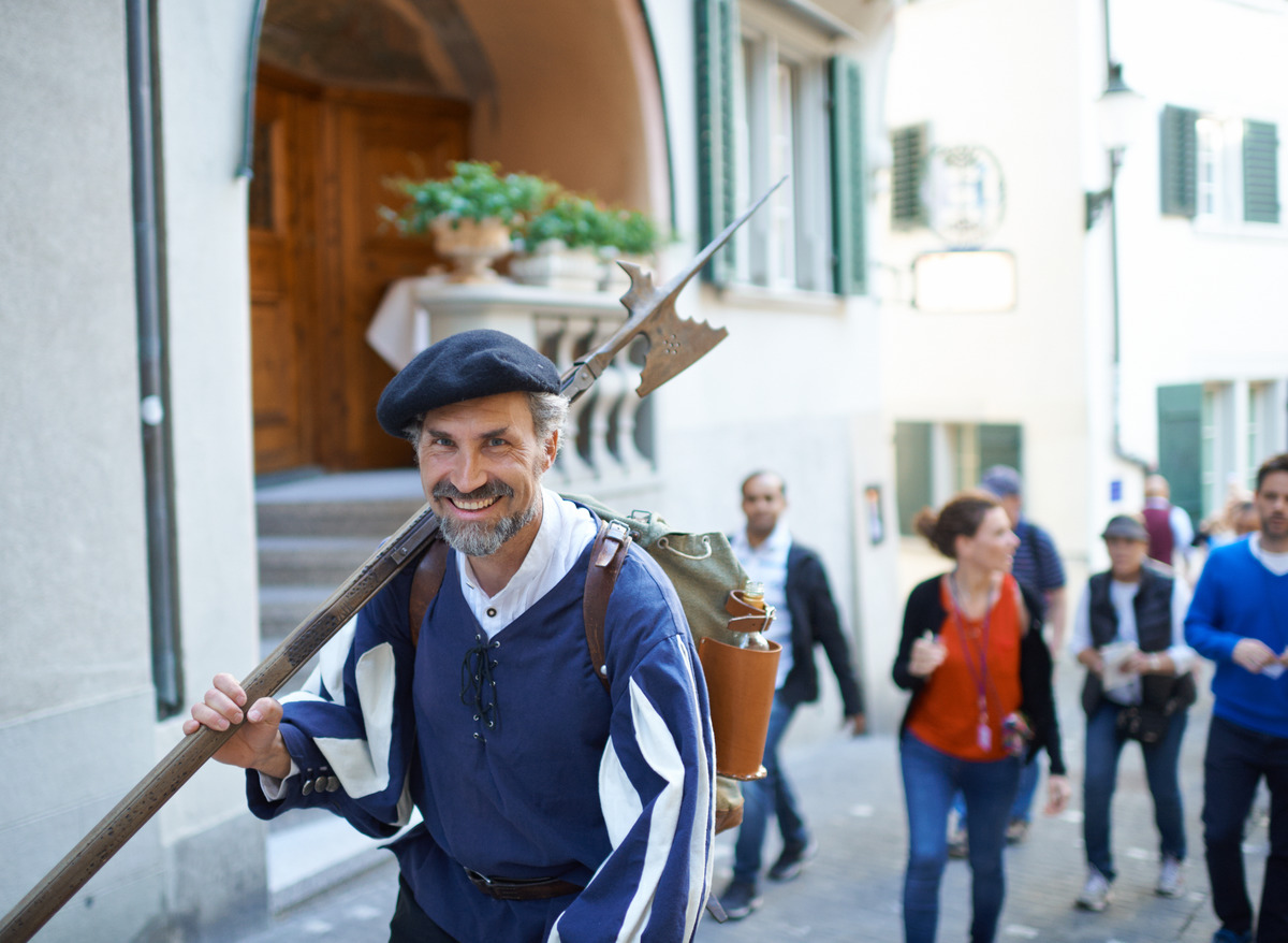 Der Stadtknecht erzählt seinen Zuhörern allerlei Anekdoten und Wissenswertes aus dem alten Zürich. Sie erfahren hierbei viel Interessantes aber auch Erheiterndes über das Essen und Trinken, die Stadtbefestigung, die Zünfte, dass Feuerlöschwesen, die Abfallbeseitigung, den Wachtdienst und vieles mehr.
